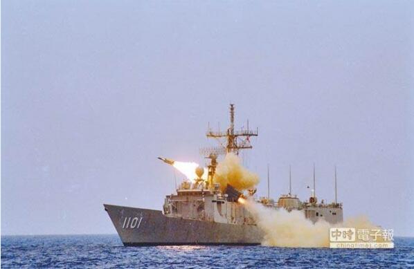 資料圖:臺軍艦試射“雄三”導彈。(臺灣中時電子報資料圖片)