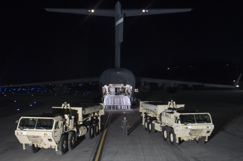 3月6日晚,“薩德”系統部分裝備運抵首爾以南約70公里處的美軍駐韓國烏山空軍基地。新華社發