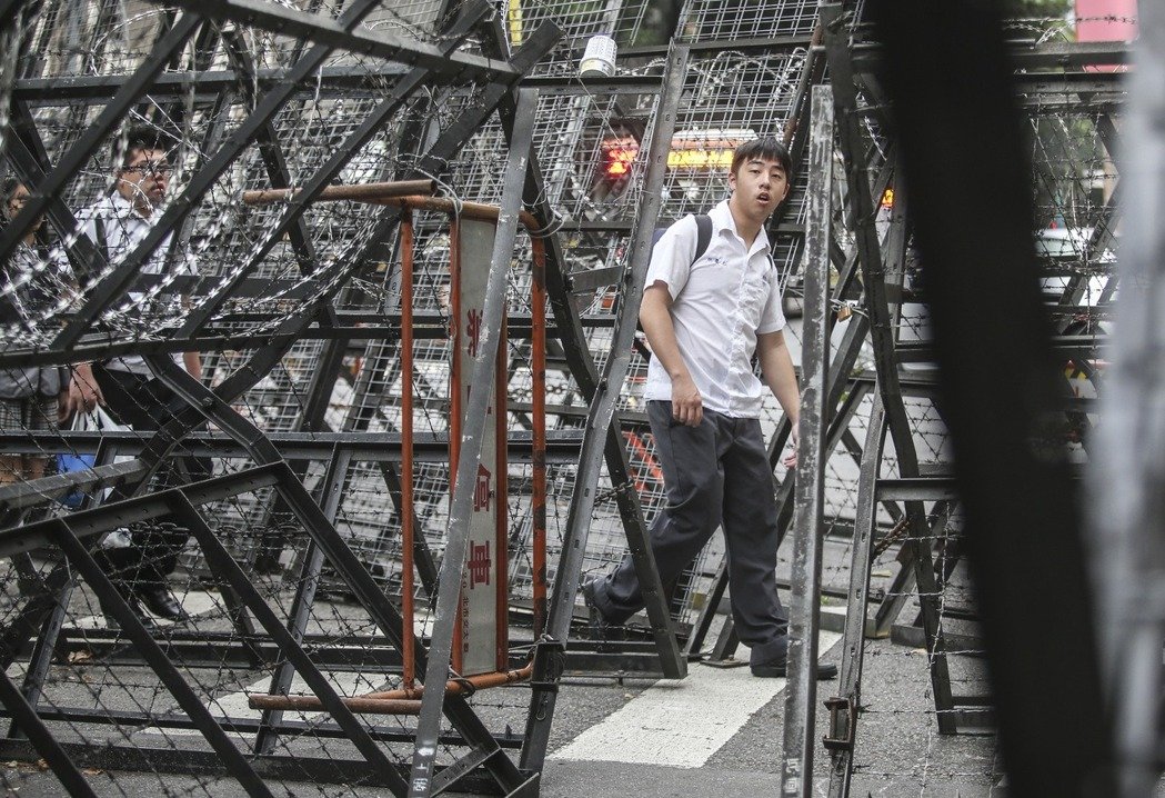 臺當局“立法院”、“監察院”、蔡英文辦公室等機關周邊架設嚴密的蛇龍和拒馬。(圖片來源:臺灣《聯合報》)