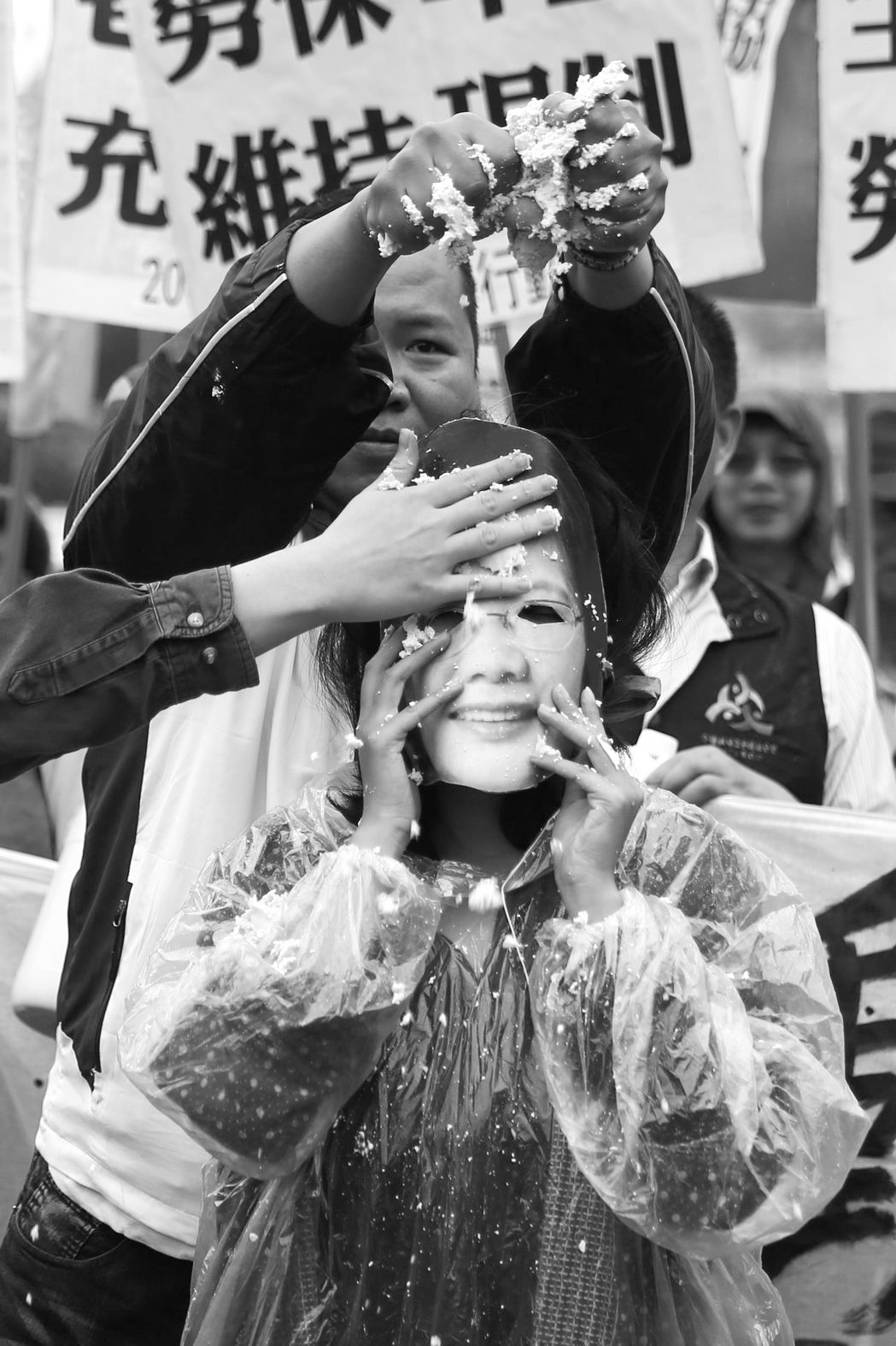 臺灣民眾抗議蔡英文吃勞工豆腐。