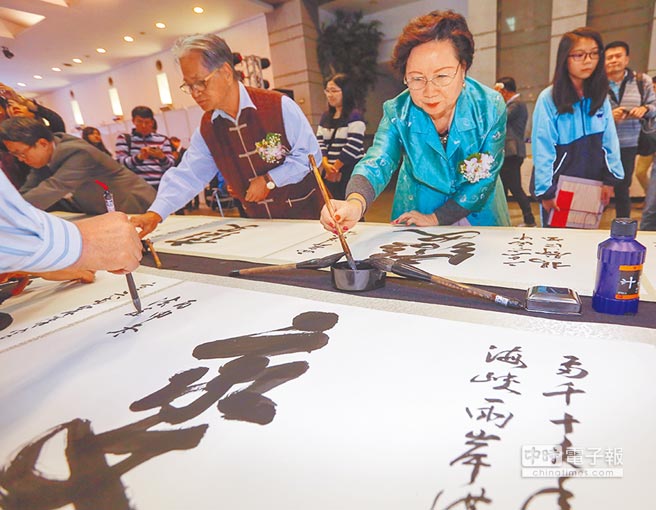 2016年兩岸年度漢字評(píng)選在《中國時(shí)報(bào)》大樓揭曉,最后由“變”字當(dāng)選,16位兩岸書法家齊聚一堂寫下“變”字。(圖片來源:臺(tái)灣《中時(shí)電子報(bào)》)