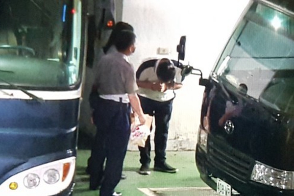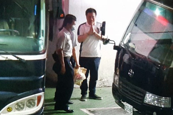 蔡正元被戴上手銬,與其他案件被告一同坐上囚車前往看守所,上車前,他雙手合十,3次面向媒體鏡頭鞠躬。(圖片來源:臺(tái)灣“東森新聞云”)