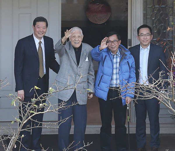 陳師孟認為若照正常法律來看,陳水扁不構成貪污。圖為李登輝(左二)與陳水扁(右二)。(圖片來源:臺灣《中時電子報》)