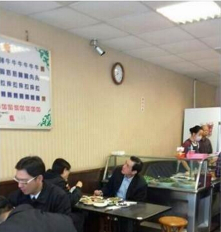 網友捕獲馬英九夫妻到高雄一家牛肉面店用餐,馬英九看似在張望價目表。(圖片取自臺媒)