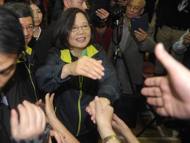 圖為2016年蔡英文當選后進行謝票,與支持者握手。(圖片來源:臺灣《中時電子報》)