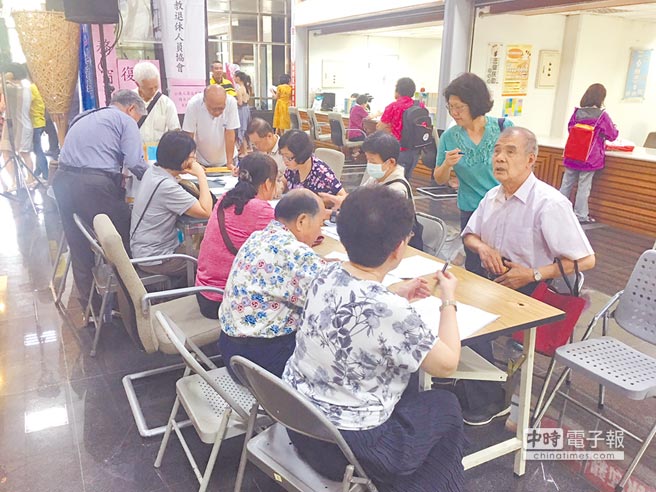 南投縣公教退休協(xié)會(huì)志工,21日上午進(jìn)駐縣政府大廳,協(xié)助退休公教人員填寫表格,向臺(tái)當(dāng)局提出訴愿或復(fù)審。(圖片來(lái)源:臺(tái)灣《中時(shí)電子報(bào)》)