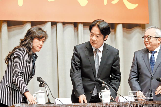 臺當局“行政院”7日舉行選后檢討結果記者會,賴清德(中)全程卸責。(圖片來源:臺灣“中時電子報”)