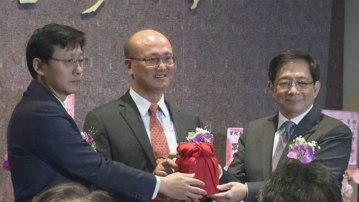 臺大新校長管中閔上午接任臺大校長,致詞時引述美國前總統約翰遜的話“昨天的風雨過去了,明天才是我們奮斗的戰場”。(圖片來源:臺灣《聯合報》)