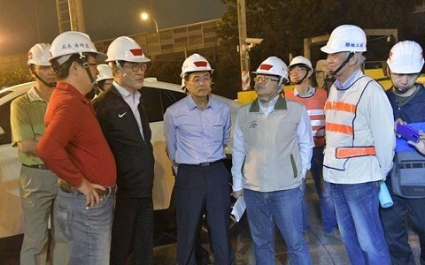 李四川(左二)帶領(lǐng)高雄市工務(wù)團(tuán)隊(duì)施工畫面。(圖片來自臺媒)