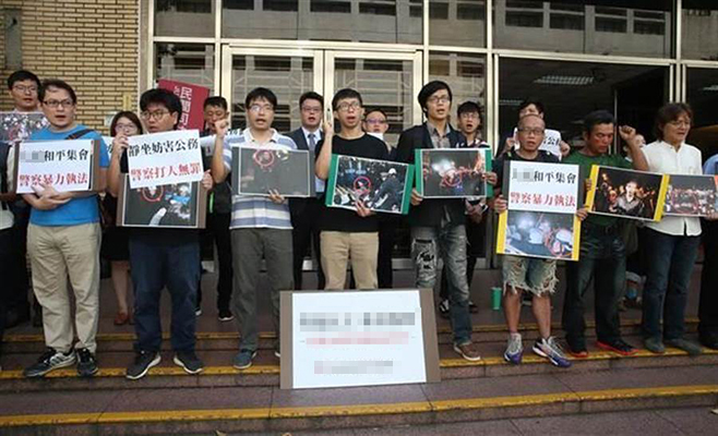 臺(tái)灣“高等法院”審理“學(xué)運(yùn)三二三占領(lǐng)‘行政院’案”將辯論終結(jié),一審獲判無(wú)罪的魏揚(yáng)(中)等于庭前開(kāi)記者會(huì),稱二審法官應(yīng)判全數(shù)被告無(wú)罪。(圖片取自臺(tái)媒)