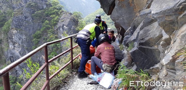 中橫綠水步道1男1女遭落石擊傷送醫(yī)。(圖片來源:臺(tái)灣“東森新聞云”)