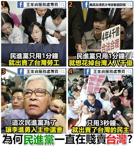 中國臺灣網4月25日訊 據臺灣“中時電子報”報道,臺“立法院內政委員會”昨日(24日)審查臺當局“中選會主委”李進勇人事案,由于會議一團混亂無法順利進行,民進黨召委張宏陸裁示并表決后,會議即結束。人事案的通過被國民黨團痛批是“三秒勇”。對此,臉譜網(facebook)網友又提及“一分瑩”、前瞻計劃1分鐘初審等事,痛批民進黨“為何一直在賤賣臺灣?”