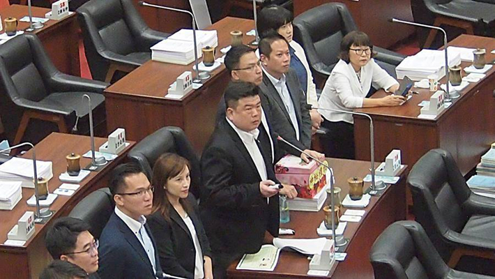 民進黨高市議員簡煥宗6日質(zhì)詢時淚灑議場,指控韓粉揚言對其孩子不利(圖片來源:臺灣“中時電子報”)