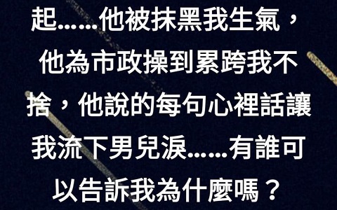 有網(wǎng)友在臉書“韓國瑜鐵粉后援會”發(fā)文:“我是退伍的職業(yè)軍人也是高雄市民,在軍職生涯中除了為父母、老婆、孩子掉淚操心難過外,唯有經(jīng)國先生讓我哀思淚流。但曾幾何時(shí),韓國瑜市長居然讓我心情起伏迭起……他被抹黑我生氣,他為市政操到累垮我不舍,他說的每句心里話讓我流下男兒淚……有誰可以告訴我為什么嗎?”