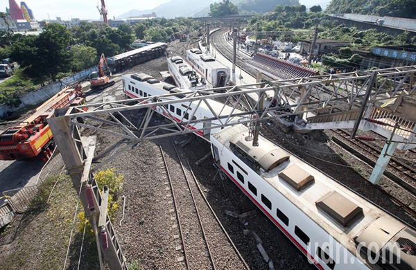 臺鐵普悠瑪列車去年10月高速行駛撞擊新馬車站月臺后出軌造成嚴重傷亡。(圖片來源:臺灣《聯合報》)