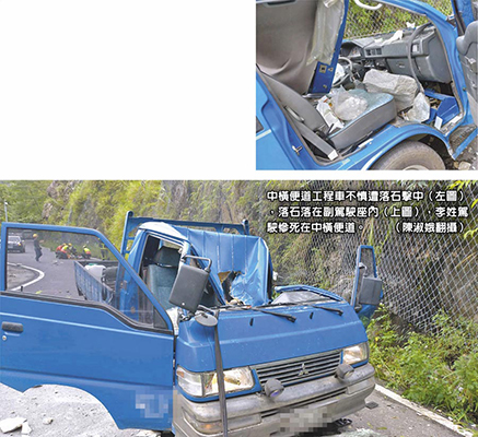 臺中橫便道落巨石砸中工程車 駕駛員頭部被擊送醫后死亡