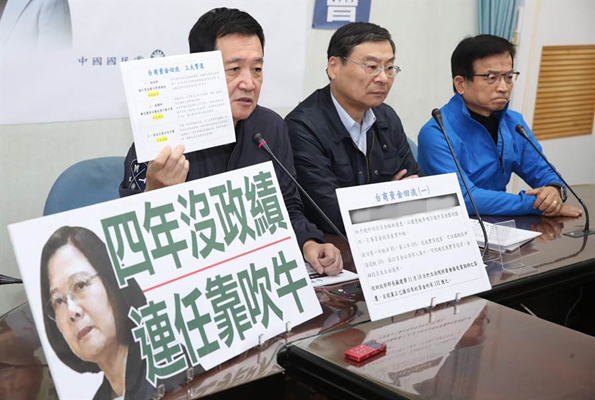 中國臺灣網11月26日訊 據臺灣“中時電子報”報道,國民黨“立委”曾銘宗、費鴻泰、賴士葆近日緊追臺商回臺投資“零蛋”議題,今(26日)又舉行記者會開轟,痛批蔡英文把臺當局“財政部”的“租稅特赦”和臺當局“經濟部”“鼓勵臺商回臺投資行動方案”混淆,“若真不懂就不要喬太守亂點鴛鴦譜”,勿再混淆視聽,且需向臺灣民眾道歉。