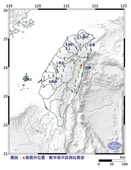 臺灣花蓮縣發生4.5級地震 震源深度21千米