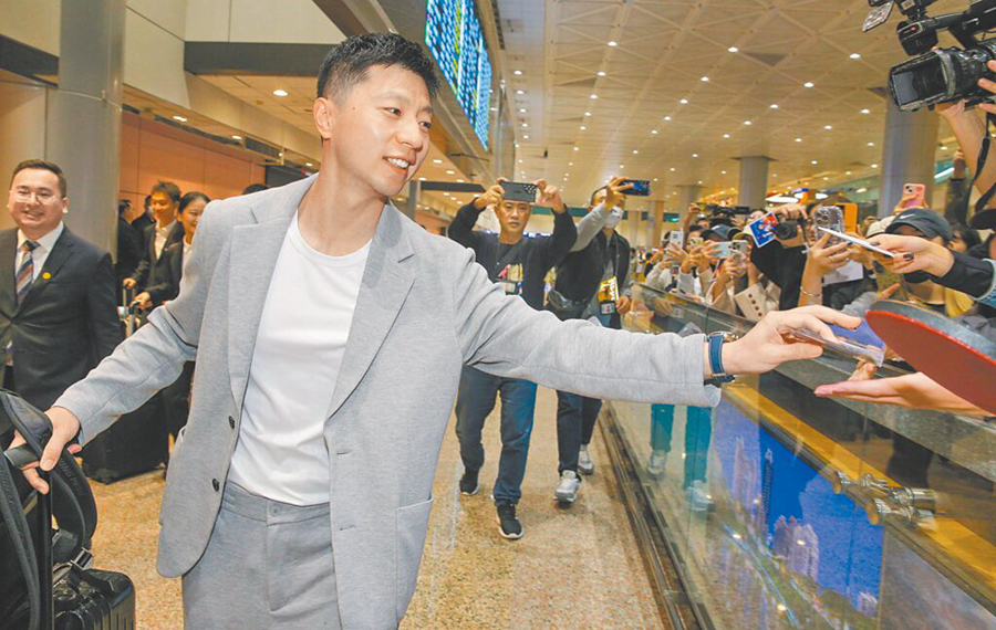 綜合媒體報道,訪問團一行抵達桃園機場時,瞬間被溫暖而又熱烈的歡呼聲、尖叫聲包圍。當馬龍出現時,現場發出一片歡呼聲,有球迷高喊“馬龍再來一球”;還有粉絲拿著球拍向馬龍索取簽名,馬龍則貼心地掏出北京體育大學的冰箱貼文創贈送,現場氛圍相當熱絡。