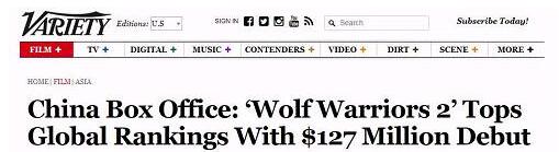 美國綜藝網(wǎng)站《Variety》對《戰(zhàn)狼2》的票房表示驚訝