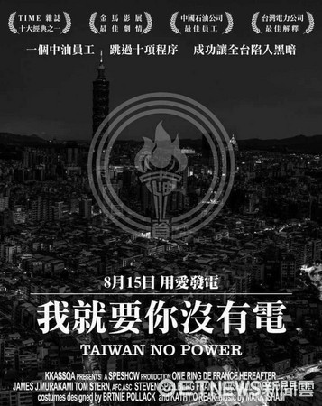 中油員工導(dǎo)致全臺停電,網(wǎng)友發(fā)揮創(chuàng)意制作偽電影海報(bào)。(圖/臺灣《東森新聞云》)