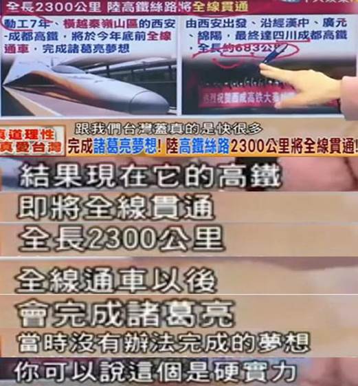 如今大陸高鐵的發(fā)展可以說為世界的聯(lián)通帶來了便捷,雖然一些心懷叵測的“臺(tái)獨(dú)”分子有意抹黑,但仍不乏理智的民眾客觀評價(jià),比如有臺(tái)灣媒體在評價(jià)橫越秦嶺山區(qū)、全長2300公里的蘭渝鐵路時(shí)就贊它“完成了諸葛亮的夢想”: