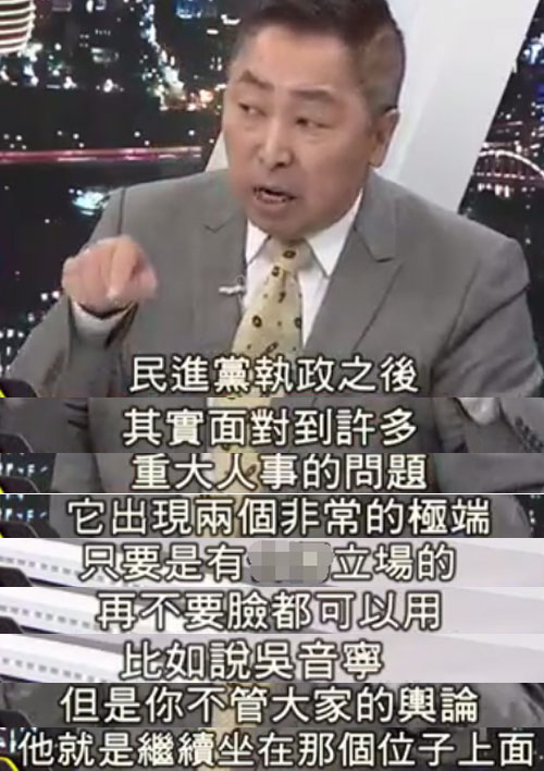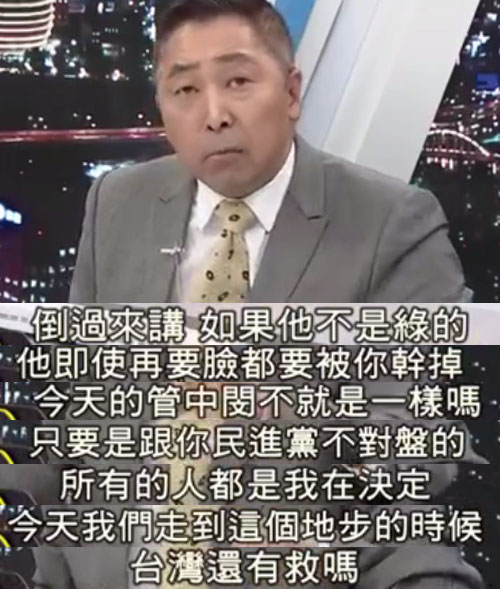 唐湘龍強(qiáng)調(diào),自從民進(jìn)黨上臺(tái)之后,但凡遇到重大的人事任命,皆是只問(wèn)顏色,不看對(duì)錯(cuò),吳音寧、吳茂昆,兩個(gè)“吳氏生非”,即使外界的爭(zhēng)議再大、再不要臉,他們也依然可以坐在那個(gè)位子上;而反觀管中閔,只因?yàn)椴皇恰熬G”的,即使再要臉,民進(jìn)黨也會(huì)想盡辦法將他拉下來(lái),“臺(tái)灣走到今天這個(gè)地步還有救嗎?”