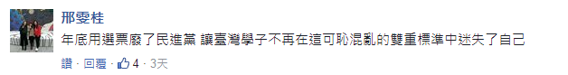 對(duì)此,島內(nèi)網(wǎng)友也紛紛聲援管中閔及臺(tái)大師生,并譴責(zé)臺(tái)當(dāng)局“干話(huà)”頻頻,以愚弄百姓為樂(lè);還有人呼吁,年底用選票“廢了”民進(jìn)黨,不要讓臺(tái)灣學(xué)子在混亂的雙重標(biāo)準(zhǔn)中迷失自己。