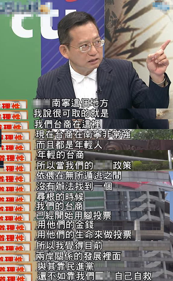 臺灣的人才面臨這樣的窘境,逼不得已離開臺灣,到大陸尋找新的生機。正如下面這位嘉賓所言,“當我們的政策依偎在無所遁逃之間,沒有辦法找到尋根的時候,我們的臺商已經開始用腳投票,兩岸關系發展里面,與其靠民進黨,不如靠我們自己自救。”