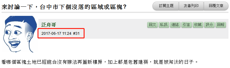 撩叔特別翻出了2017年6月的一個臺灣網(wǎng)友的帖子,標題叫做《來討論下,臺中市下個沒落的區(qū)域或區(qū)塊》: