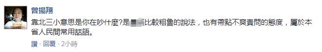 不過,檢察官卻替洪女解釋了下,稱其罵人詞語中“靠北”,實則代表不屑他人叫苦或抱怨,而“三小”則是臺語的“什么”的意思,所以從臺語翻譯過來“靠北三小”的實際意思為“吵什么吵”,沒有侮辱的意思,因此不起訴洪女。