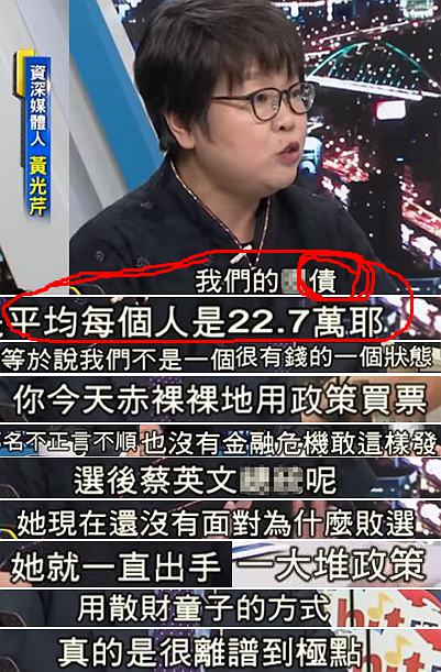 黃光芹更為此痛批蔡英文是“赤裸裸的政策買票”,直言她這種散財童子的方式,真是離譜到極點!