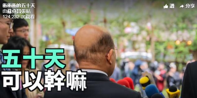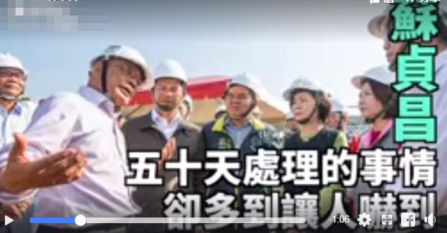 3月3日晚,蘇貞昌在自己的臉譜網上自稱公布了一則名為《沖沖沖的五十天》的政績影片,這支短片雖然只有1分20秒,但信息量那是相當相當大的啊:影片用Google小姐語音念旁白,細數了蘇“內閣”50天的驕人政績。