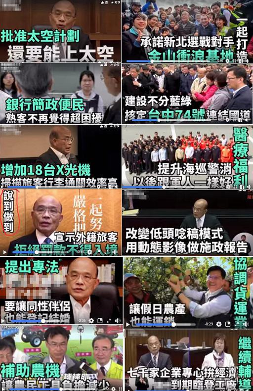 都鋪墊好后,影片便開啟了“旋風式”夸獎的模式,細數了“沖沖沖”“院長”蘇貞昌上任以來的一系列政績!