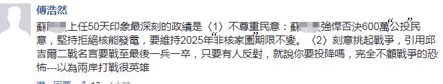 嗯……蘇貞昌是不是真如影片中宣傳的那樣“接地氣”“會做事”,侃爺這種生活在大陸的小人物,自然是不知道也不好評價,所以咱還得聽聽廣大臺灣同胞的“現身說法”。