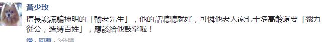 當然,也有人覺得應該給蘇貞昌掌聲:可憐的“輸老先生”70多的高齡還要“戮力從公,造縛百姓”……
