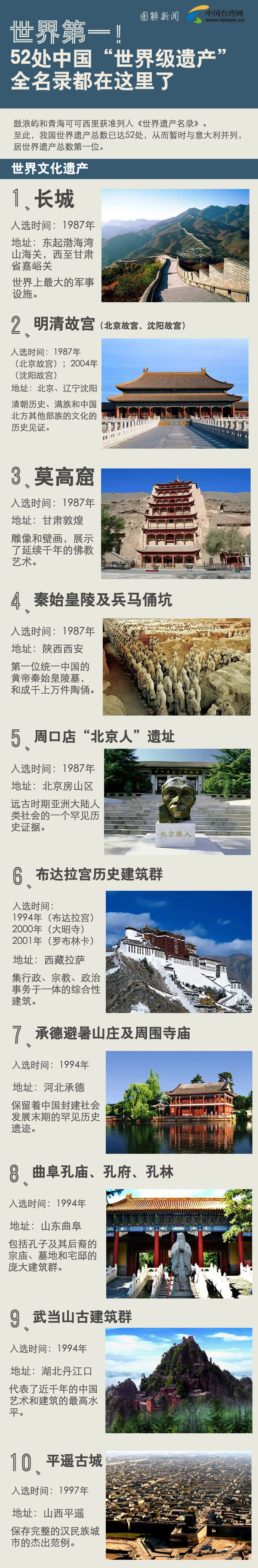 【圖解新聞】52處中國“世界級遺產”全名錄