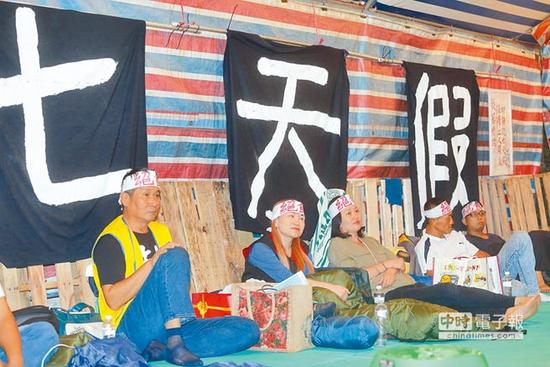民進黨上臺后積極推動“一例一休修法”,引發(fā)在野黨與部分勞工團體反彈。去年11月,為抗議蔡當局砍7天法定假日,臺勞團代表自11月4日起連續(xù)在“立院”外絕食。據(jù)臺灣“聯(lián)合新聞網(wǎng)”報道,勞團表示,蔡英文就職百日,與許多勞工朋友在蔡辦前寫血書,要讓蔡當局看見砍假政策就是犧牲勞工的血汗,圖利資方。但即便勞工用自身鮮血作為沉痛控訴,蔡當局仍執(zhí)意硬干。
