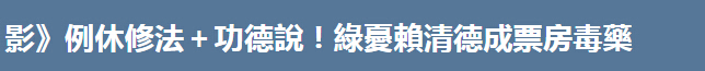 《中時(shí)電子報(bào)》發(fā)文指出,賴清德接任“行政院長”后,“賴神牌”幾乎成民進(jìn)黨臺(tái)柱,一度拉抬了蔡英文低迷的民調(diào),但被稱為“戰(zhàn)斗院長”的賴清德最近因“功德說”被罵翻,不但民團(tuán)表態(tài)以后都不投民進(jìn)黨,連自家“立委”也有雜音,曾參與“學(xué)運(yùn)”的青年嗆聲說民進(jìn)黨為了“修法”成了一言堂。“綠委”坦言,“修法”對賴清德聲望確實(shí)有影響。