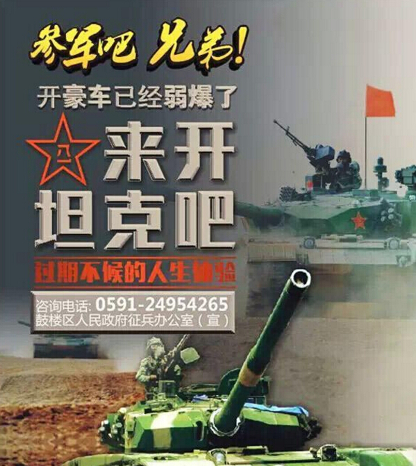 游梓翔還將兩岸的征兵方式作了一個比較。他表示,大陸軍隊招募廣告,文案除了比較傳統的“參軍報國,無限光榮”“熱血報國當少年、歲月無悔正青春”,同樣運用了美圖和人物當主角,但基本原則仍在提升軍人形象,以自我實現為訴求,提高參軍的榮譽感,例如以下創意文案: