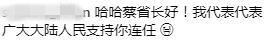蔡英文這一冷不丁的發文確實引來了許多網友圍觀,其中不乏一些死忠粉給她留言打氣,但較為引人注目的是,文章下涌入了許多大陸網友,紛紛向“蔡省長”問好。
