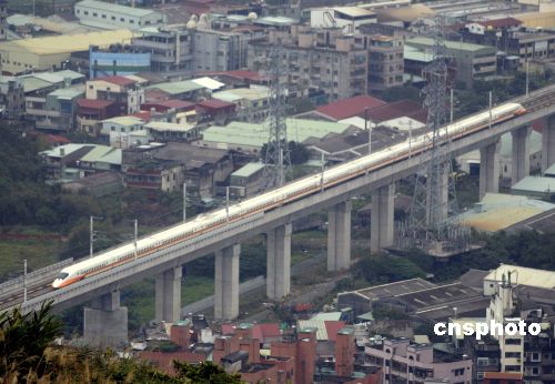 臺灣高速鐵路一列車在臺北縣境內通過。。 中新社發 張煒 攝