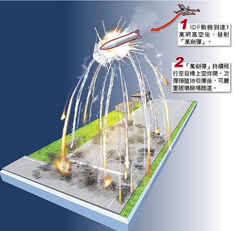 林郁方發(fā)布新聞稿表示,“萬劍”系統(tǒng)內(nèi)裝有上百枚次彈頭,具遠(yuǎn)距遙攻能力,除可用于破壞、癱瘓機(jī)場(chǎng)跑道外,對(duì)部隊(duì)集結(jié)區(qū)、港口裝卸區(qū)、飛彈及雷達(dá)陣地等,也有極大殺傷力。