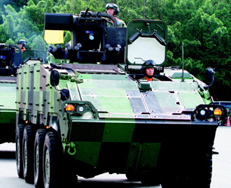 臺(tái)軍“憲兵司令部”昨天進(jìn)行動(dòng)態(tài)操演,云豹八輪裝甲車亮相。(圖片來源:臺(tái)灣《聯(lián)合報(bào)》)