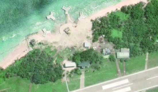 據臺灣今日新聞網站報道,衛星照片顯示,位于太平島西北側海岸出現一處由4個巨型三爪結構,以半月形包圍組合而成的臨海陣地(圖上紅圈處)。從空中俯瞰,這4個三爪型結構看起來像是一種保護海岸的消波塊,但它們的體積實在太龐大,僅一個結構體就比島上40毫米速射炮陣地的工事還要大上五六倍。盡管臺灣防務與海巡部門均以機密為由不對外公布,但美國《紐約時報》隨后披露,臺方已要求“谷歌地球”將相關衛星照片加以模糊處理,因此這些設施很可能是軍事用途。今日新聞網站稱,根據臺灣“國防部”近期發布“南沙營區設施工程”采購案顯示,臺灣“中科院”正在太平島埋設“L-波段信號電纜”,并建設供電機房。由于臺軍現役L波段雷達通常是指美制AN/TPS-117機動遠程預警雷達,最大探測范圍超過300公里,因此太平島上的神秘設備很可能與這種遠程雷達有關。