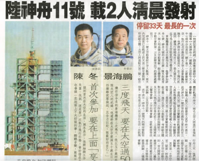 搭載航天員景海鵬和陳冬的神舟十一號(hào)載人飛船10月17日順利升空。連日來(lái),香港、澳門和臺(tái)灣多家主要報(bào)紙對(duì)此大篇幅報(bào)道,積極評(píng)價(jià)此次載人航天任務(wù)為海內(nèi)外華人帶來(lái)鼓舞。