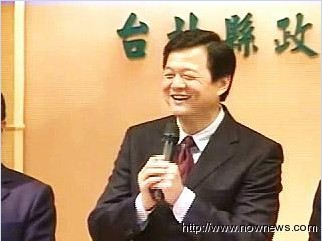 周錫瑋23日上午現身臺北縣府,揮別記者會上的沉重、含淚,面帶微笑接受媒體詢問。圖片來源:今日新聞