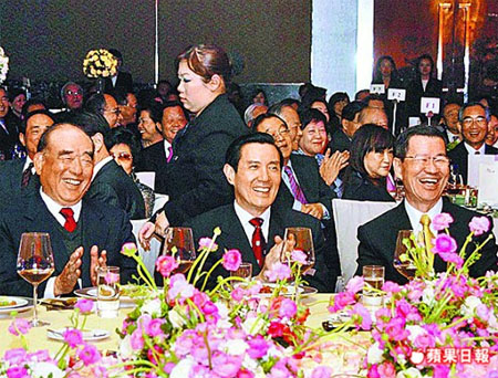 連家喜宴,馬英九(中)跟臺當(dāng)局高官、國民黨大老都出席。 來源:臺灣《蘋果日報》