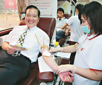中國臺灣網5月6日消息 據臺灣《聯合報》報道,臺灣新竹捐血中心昨天在國賓飯店表揚快樂捐血族和熱心募血團體,新竹市長許明財開心地打破自己的捐血紀錄,達到102次;桃園、新竹、苗栗地區首位捐血逾千次的是姚文雄,還有對捐血姊弟檔劉嘉惠和劉家郎。