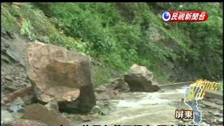 屏東霧臺(tái)臺(tái)24線(xiàn)落石坍方造成道路中斷。圖片來(lái)源:臺(tái)灣“民視新聞”